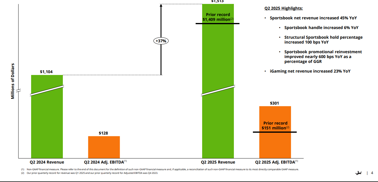 DraftKings raportoi 3.43mrd € liikevaihtoa. DK ei erittele kasino ja sportsbook tuloksia.