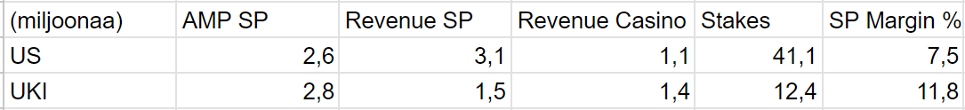 Alla vertailussa brittien saaret ja US. Pelaajamäärä on melkein sama. Jenkit betsaavat 3.3x enemmän, mutta viivan alle jää vain 2x enemmän.
