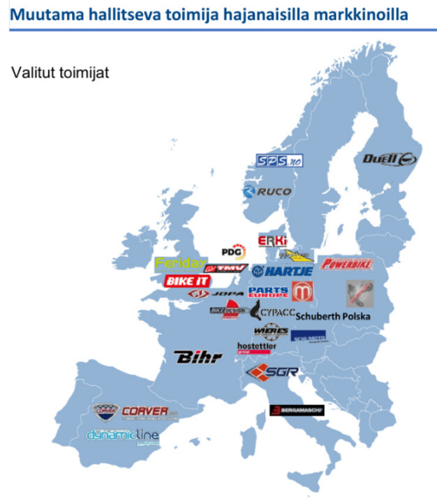 Benelux maissa iso tekijä on ilmeisesti Powersports Distribution Group, joka mainostaa olevansa “Euroopan nopeimmin kasvava moottiripyörän osien jakelija”. Yhtiö on tehnyt paljon yritysostoja viimevuosina.