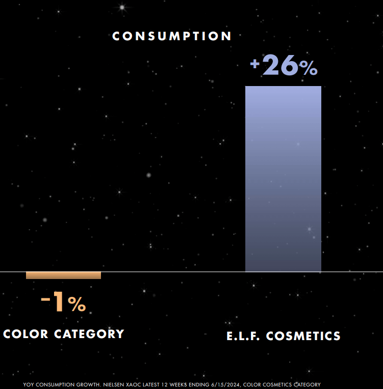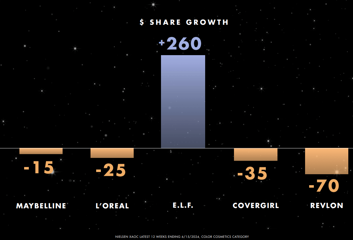 “Vår varumärkesfamilj omfattar e.l.f. Cosmetics, e.l.f. SKIN, Naturium, Well People och Keys Soulcare. Våra varumärken finns tillgängliga online och hos ledande detaljhandlare inom skönhet, massmarknad och specialhandel. Vi har starka relationer med våra detaljhandelskunder som Target, Walmart, Ulta Beauty och andra ledande återförsäljare som har gjort det möjligt för oss att expandera distributionen både nationellt och internationellt.”