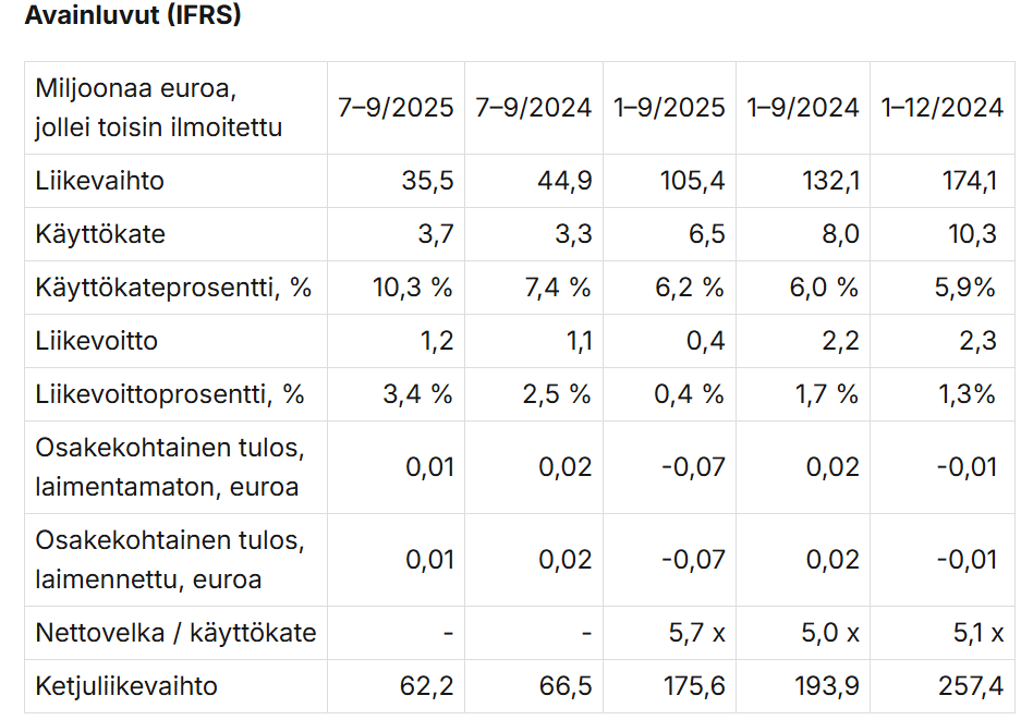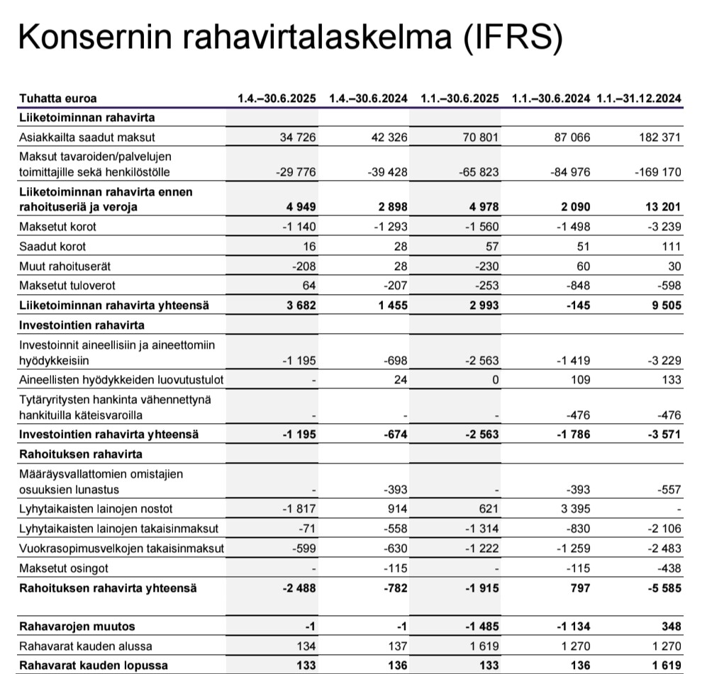 2Q2025 Operating cash flow 3.7 (!) MEUR, from which loan interest (1.1 MEUR) has been paid on top.