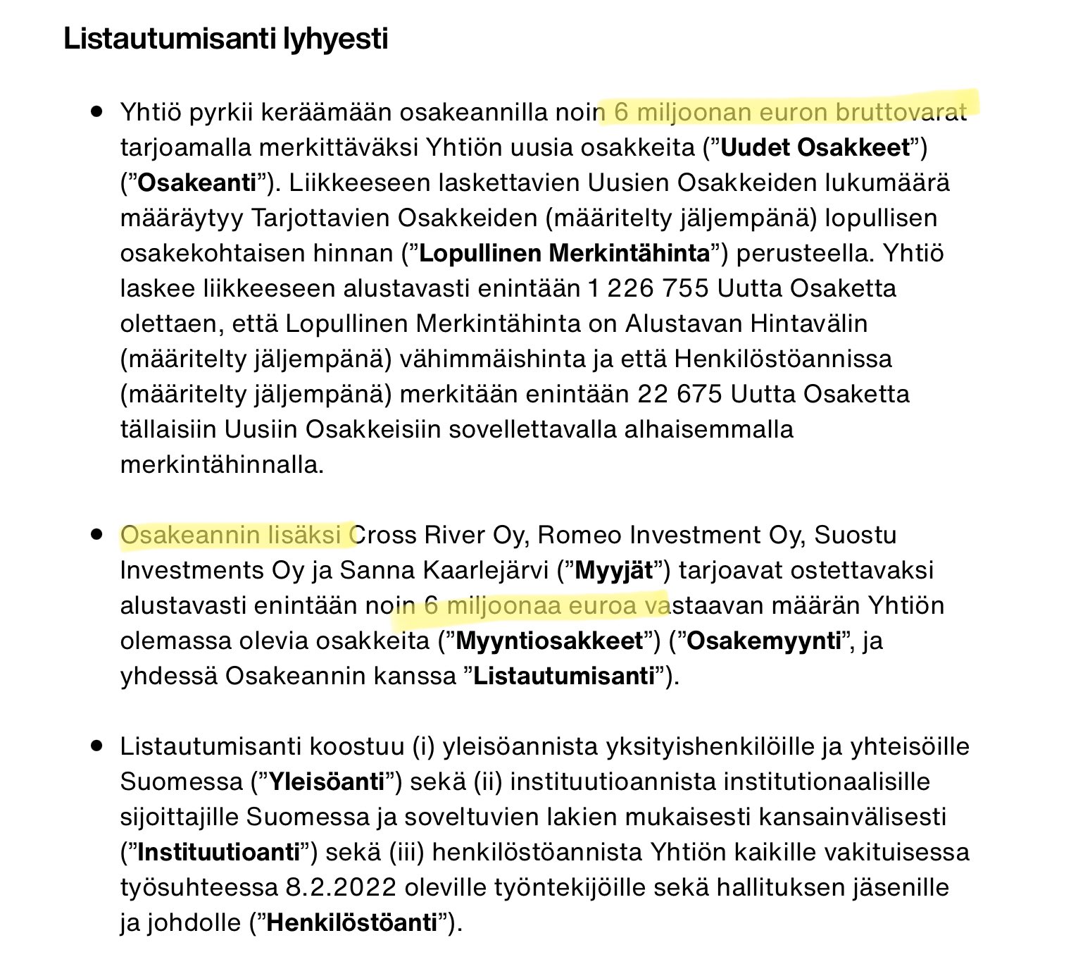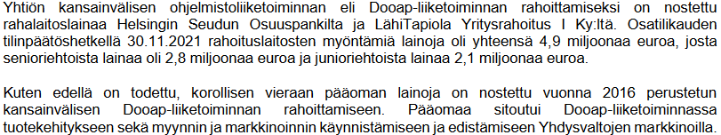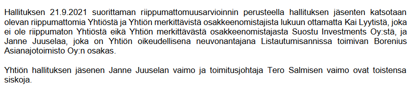 Ifølge Salminen har selskabets bestyrelse sat som mål at fordoble omsætningen i strategiperioden til ca. 45 millioner euro. Målet inkluderer mulige virksomhedskøb."