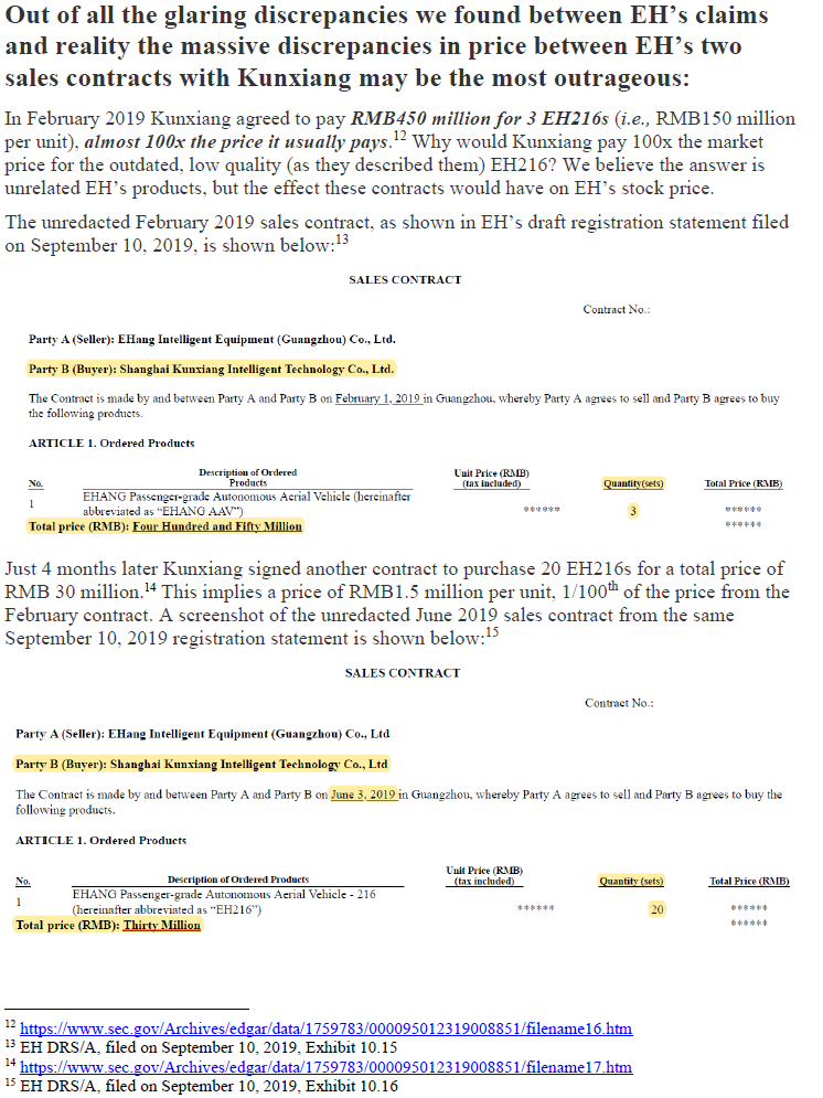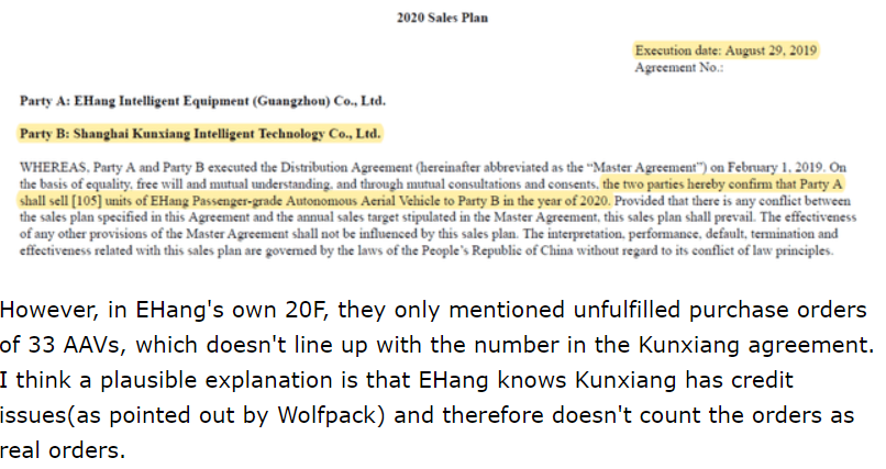Ja “even if Wolfpack is right and Kunxiang is EHang’s largest customer(which I doubt)” - mikä tarkalleen saa epäilemään? Tämä jää hämärän peittoon. Vahvaa mutuilua.