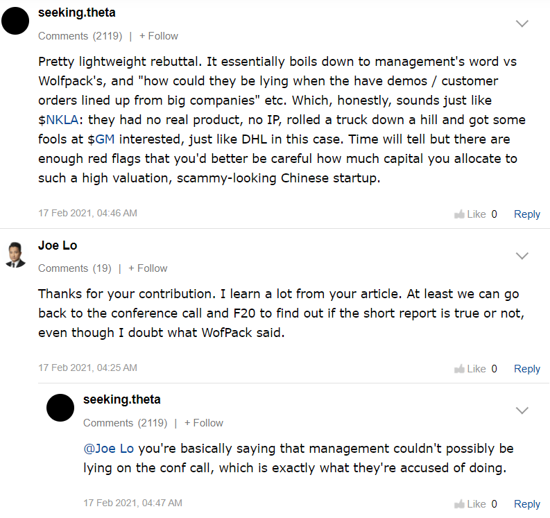 Joitakin hyviä pointteja Seeking Alphan vastauksessa, mutta aika monta hutia myös.