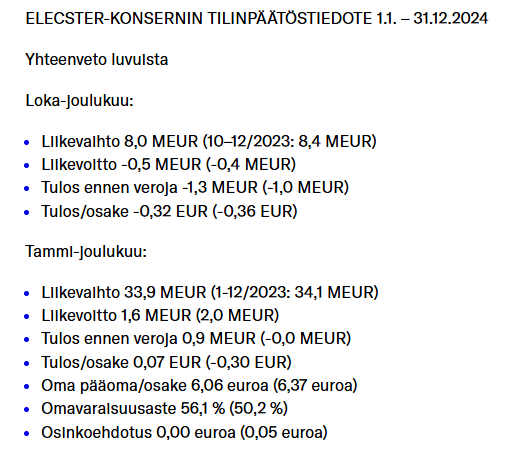 Elecster will publish its financial statement release for the period 1.1.-31.12.2023 on 22.2.2024.