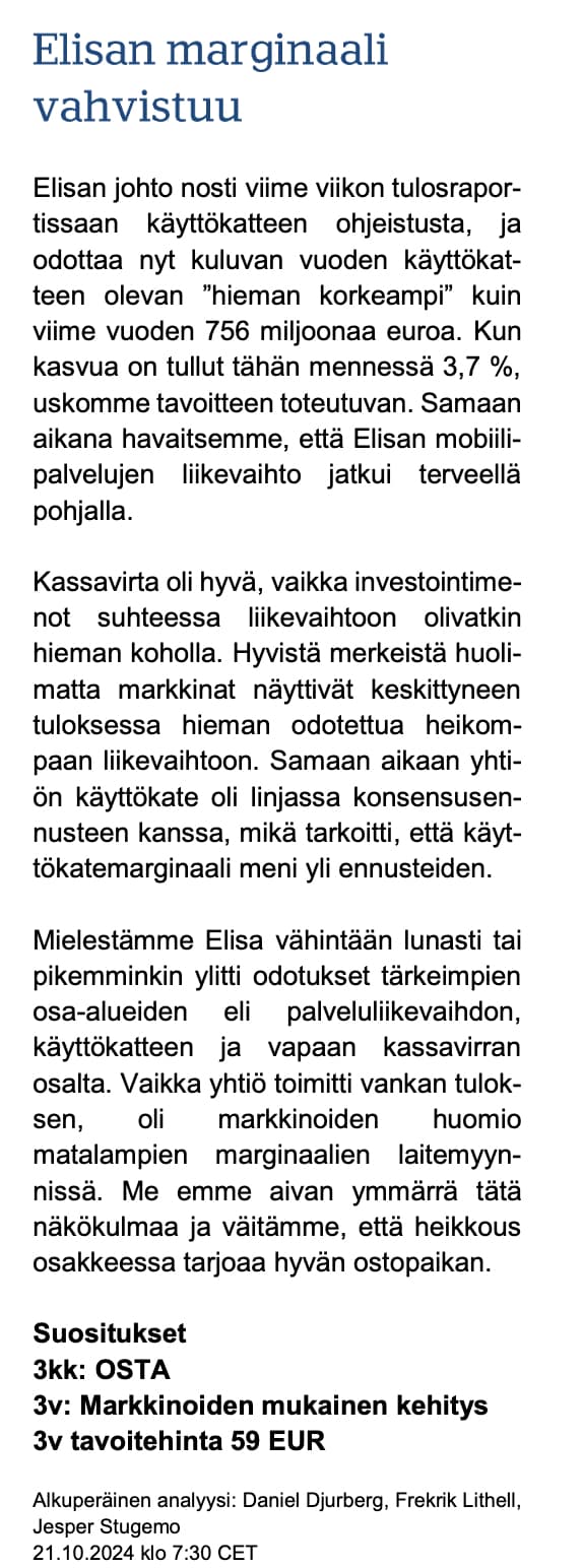 Osari ulkona: Elisa Oyj: Elisan osavuosikatsaus Q3 2024 - Inderes