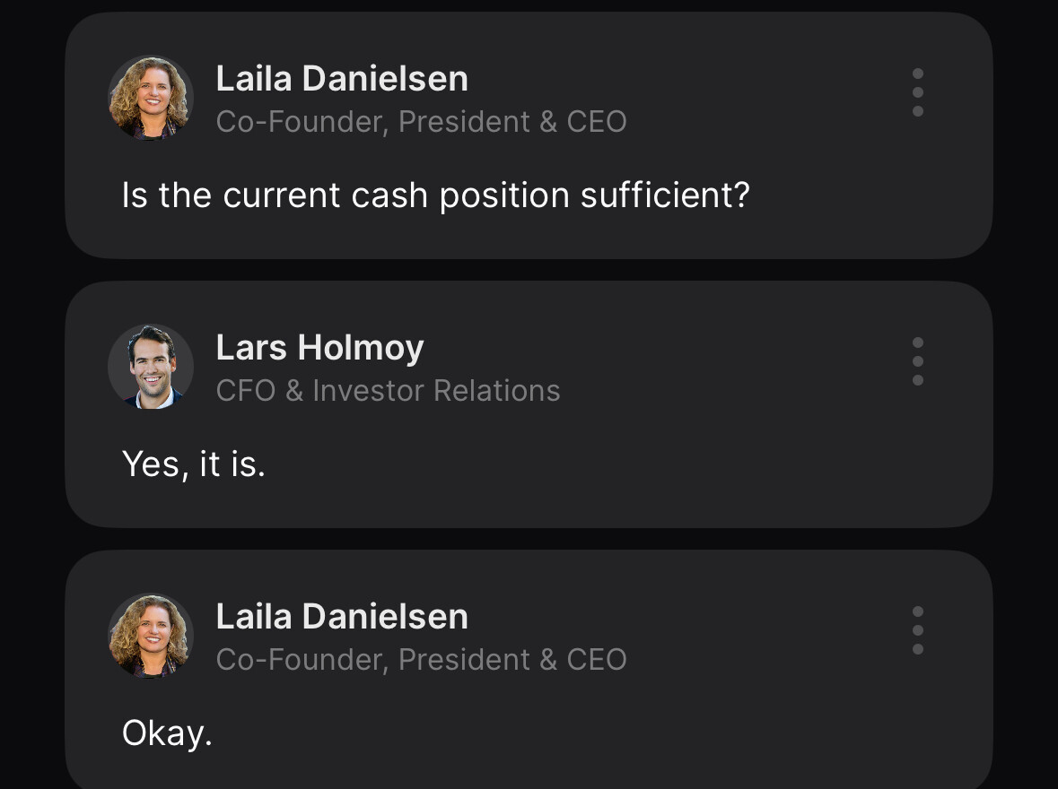 I lyset heraf er Lailas overraskelsessalg nærmest at trække tæppet væk under firmaets omdømme. Med disse oplysninger kan jeg ærligt talt ikke engang fatte, hvor dårligt og frem for alt frækt et træk salget var på dette tidspunkt, medmindre Laila er på vej ud. En klog person ved udmærket, hvordan et sådant træk vil se ud, og hvordan det vil blive tolket. Nu er beskeden dog sendt, og ret mange ejere hørte den. Hvis der ikke dukker mere information op et sted fra, kan jeg ærligt talt ikke tolke dette på nogen anden måde, end hvad det ser ud til.
