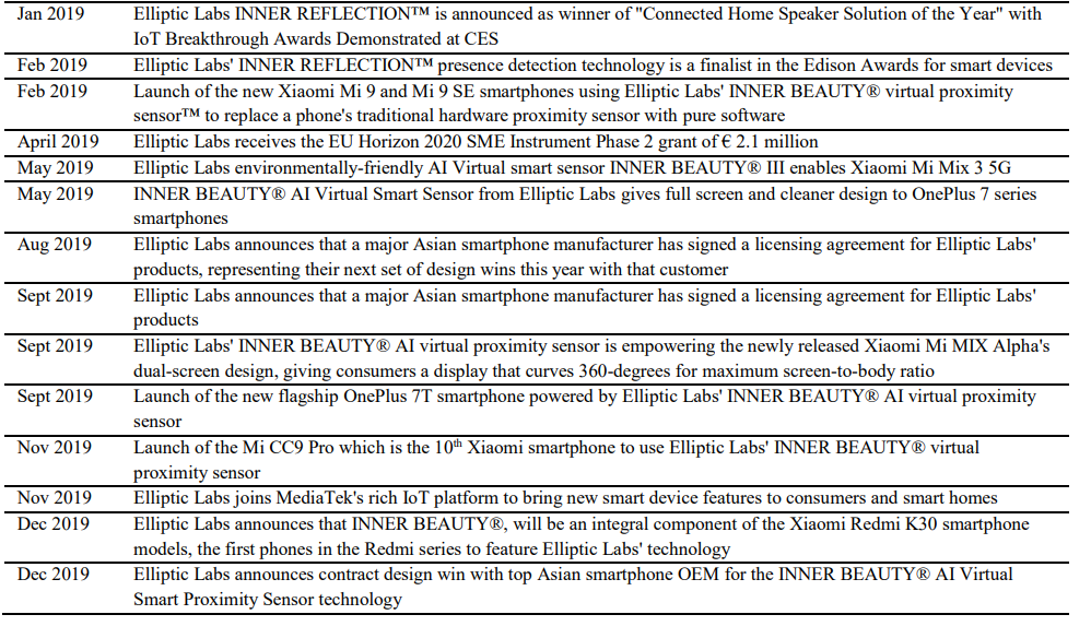 Oslo, Norge — Elliptic Labs (EuroNext Growth: ELABS.OL) har tecknat ett mjukvarulicensavtal med en stor ny kund som planerar att producera 100 miljoner smartphones under 2021. Denna stora asiatiska smartphone-OEM har valt Elliptic Labs’ INNER BEAUTY® AI Virtual Proximity Sensor för att driva närhetsdetektering i sin kommande mellanklass-smartphone som en start. Introduktionen av Elliptic Labs’ AI Virtual Smart Sensor-plattform i dess smartphone-portfölj öppnar också upp nya möjligheter för OEM-tillverkaren, vilket gör att de kan införliva funktioner som beröringsfri gestdetektering i sina framtida smartphonemodeller.