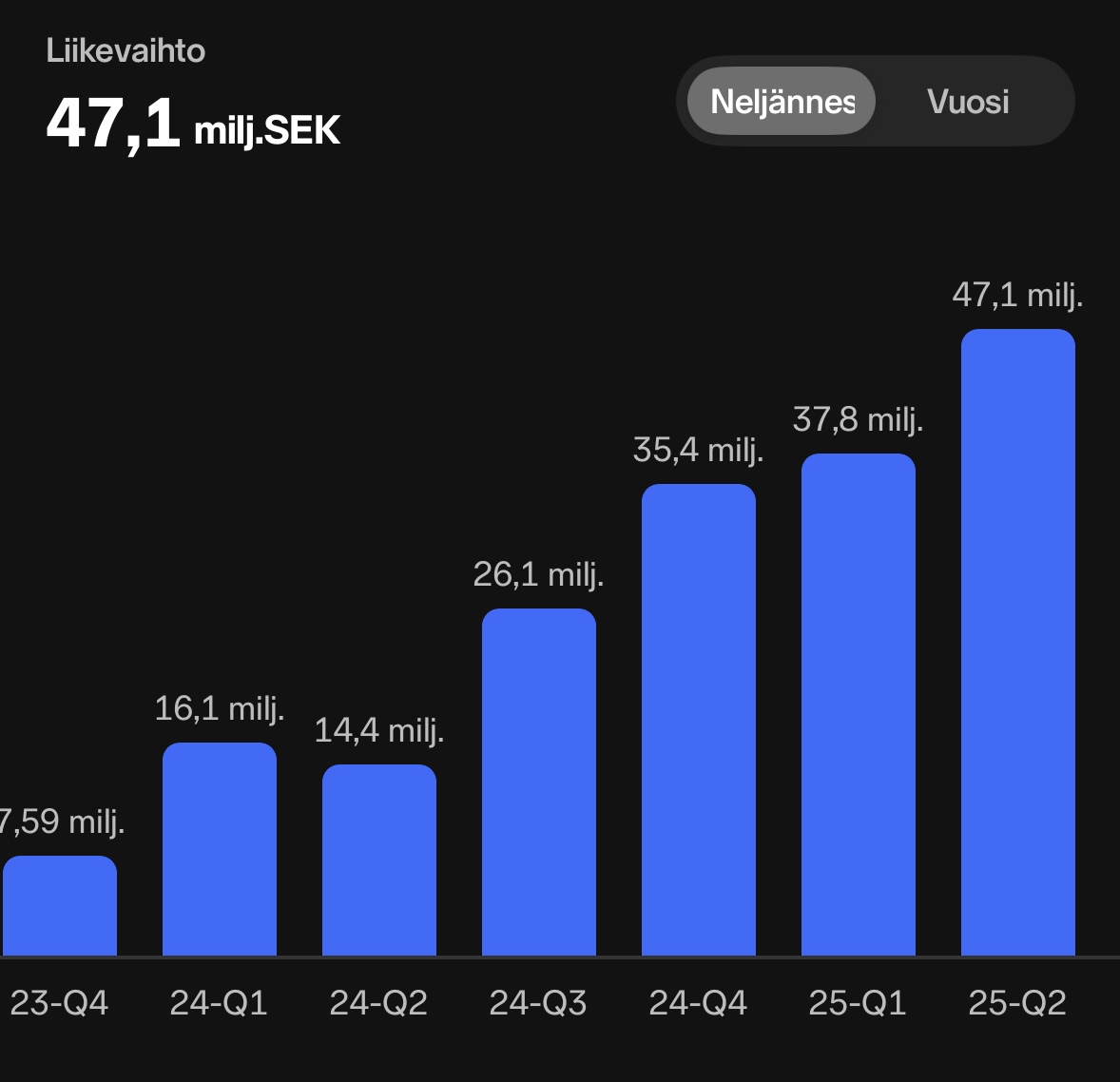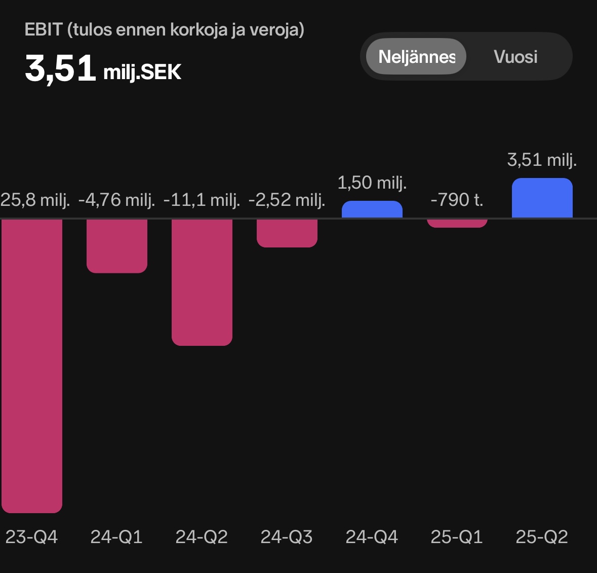 Q2/2025 was the third consecutive quarter with positive free cash flow. The balance sheet is debt-free. The turnaround towards profitability is currently underway. The company is currently undergoing an organizational restructuring, which incurred one-off costs in Q2 and is expected to affect the third quarter as well.