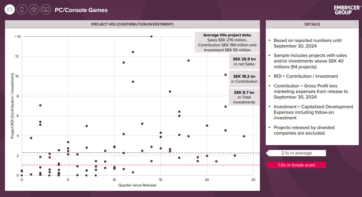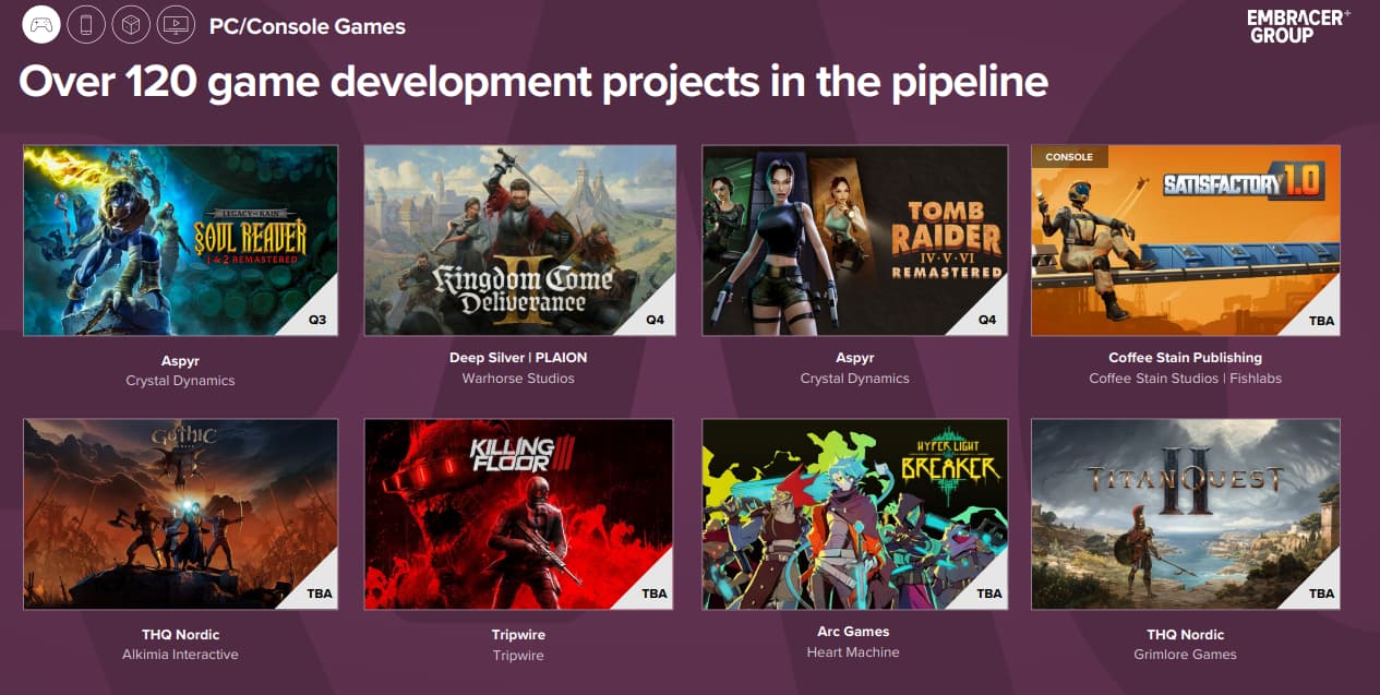 Kehitteillä on yhä 120 peliä, mutta suurin osa on Embracer laatuista AA mössöä, joka ei löydä yleisöään. KCD2 eli masokistien Skyrim myy varmasti miljoonia, mutta luotto muuta portfoliota kohtaa ei korkealla. Aspyrin tuotokset ovat olleet joka kerta pettymyksiä. Tomb Raider Remaster ainoa oikea onnistuminen yritysoston jälkeen ja sekin kehitetty ulkopuolisten modaajien voimin, eikä Aspyrillä ollut oikeasti mitään roolia sen kehityksessä. Hyper Light Breaker viivästynyt jo parilla vuodella ja peli näyttää yhä pahasti keskeneräiseltä.