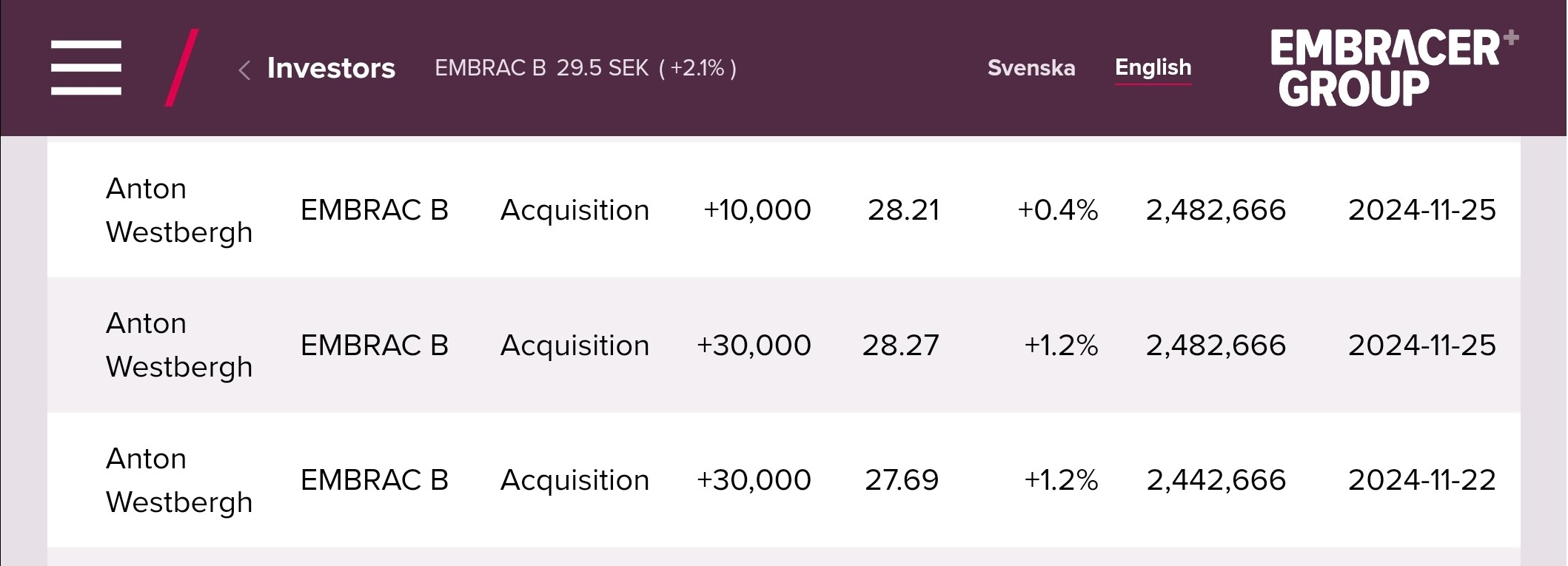 Alkuperänen kauppa maksettiin Embun osakkeilla, joita oli 27milj kipaletta(raportin sivulla 25 founders/management 43,7milj osaketta)…olisko edellispäivän myynnit ollu niitä?