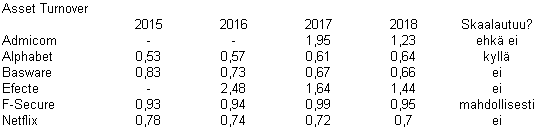 F-Secure on tällä hetkellä ainoa ohjelmistotuoteyhtiö, jonka olen kelpuuttanut salkkuun Helsingin pörssistä. Uskon sektorin kasvuun pitkälle tulevaisuuteen, koska kohta on vaikea löytää tuotetta, jossa ei ole vähintään yksi tietokone upotettuna sisään (siinä softaa ja softassa tietoturvaongelmia). F-Secure on riittävän iso toimija alallaan, sillä on aina ollut kilpailukykyiset tuotteet ja yleisesti ottaen hyvä pitkä hyvä track record. Se on myös riittävän likvidi (pelkästään tällä ehdolla voi hylätä suuren osan Helsingin pikkuteknoista).