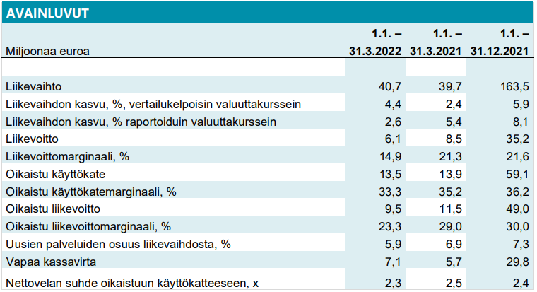- Liikevaihto: Enento Group odottaa liikevaihdon kasvun vuonna 2022 olevan vertailukelpoisin valuuttakurssein lähellä pitkäaikavälin tavoitteen (5-10 %) alareunaa.