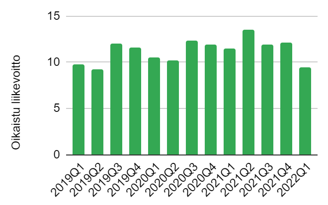 Tämä keskimäärin 9.6%, tästä vähennetty poistoina kasvua tuoneet investoinnit!