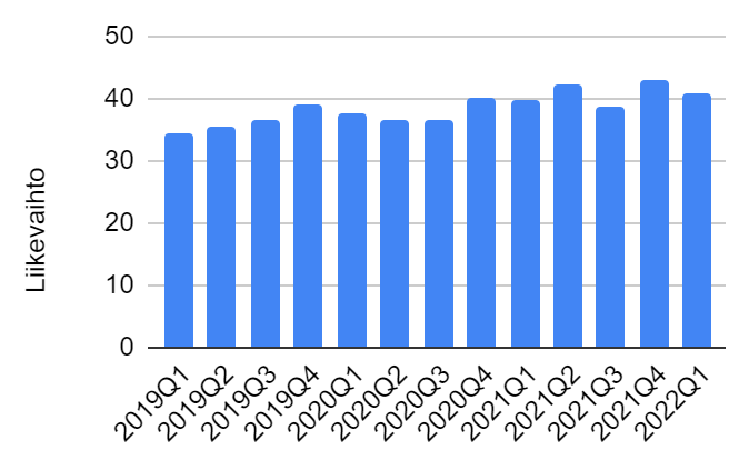 2019-2021 liikevaihdon kasvu 146.0M€-163.5M€ = 5.8%/vuosi