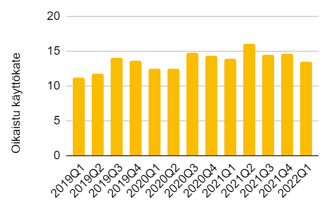 - Taserakenne: Nettovelan ja käyttökatteen suhteen pitäminen alle kolmen, ylläpitäen tehokkaan pääomarakenteen.
