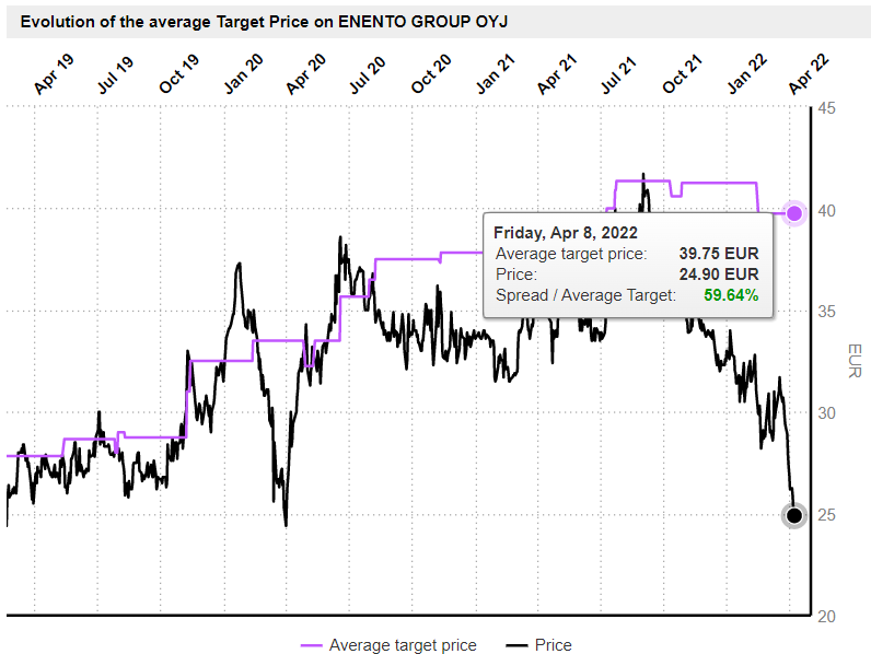 Hinta on Enento Groupissa houkutteleva, kun osake treidaa nyt alle koronapohjan ja 2019 taantumapelkojen tasolla: