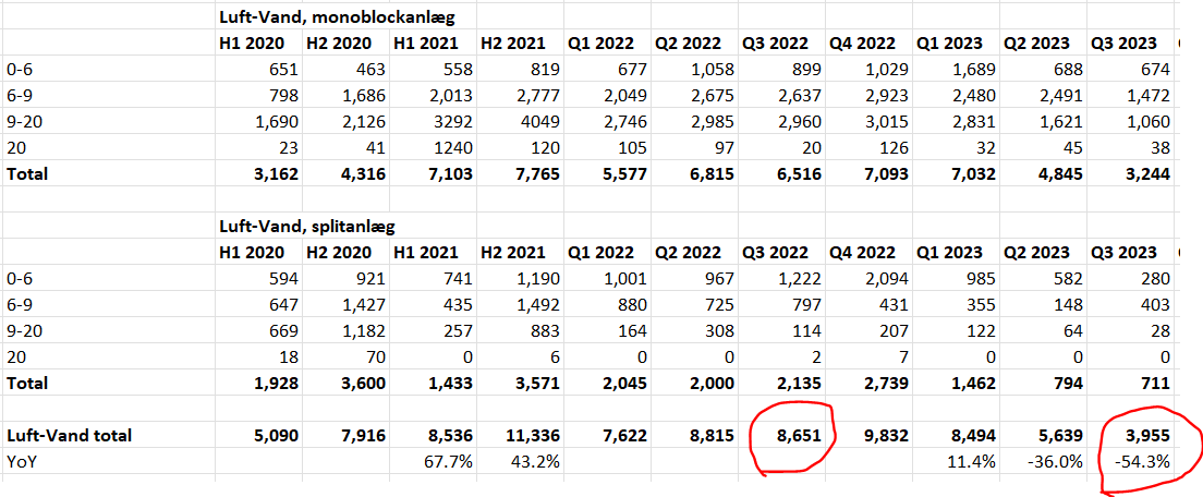 Tanskassa (Energy Saven suurin markkina) ilma-vesipumppujen toimitukset vuoden kolmannella kvartaalilla -54% koko markkinan osalta: