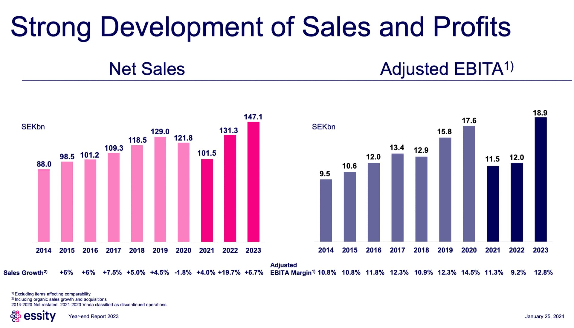 • Net sales increased 12.1% to SEK 147,147m (131,320). Sales growth, including organic sales growth and
