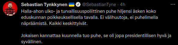 Kuitenkin, jos Halla-Aho jatkaa tällä linjalla voisin hyvinkin äänestää häntä presidentiksi. Ei todellakaan mitään persusettiä. Viisaita sanoja mitään kiertelemättä ja kaikki huomioiden. Mieshän on suorastaan puhjennut kukkaan. Toiset ovat parhaimmillaan kovissa tai koventuvissa paikoissa. Kuunnelkaa ihmeessä.