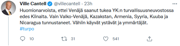 Kazakstan ei muuten ole tunnustanut. Tämän Ville Cantell korjasi erillisessä twiitissä.