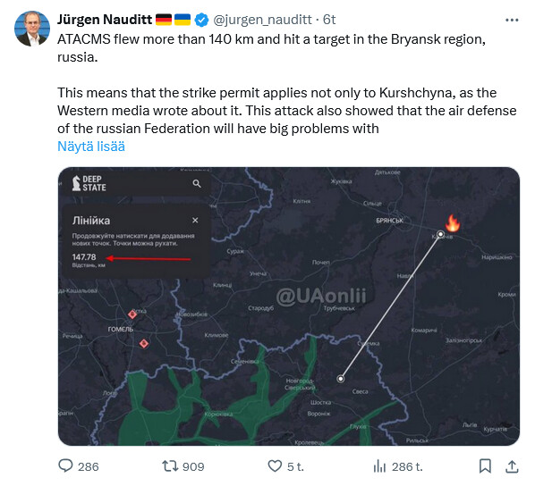 UKRAINA ON TEHNYT ENSIMMÄISEN ISKUNSA ATACMS-OHJUKSIA KÄYTTÄEN VENÄJÄN SISÄPUOLELLA, MIKÄ MERKITSEE MERKITTÄVÄÄ ESKALAATIOTA MAIDEN VÄLISESSÄ JATKUVASSA KONFLIKTISSA