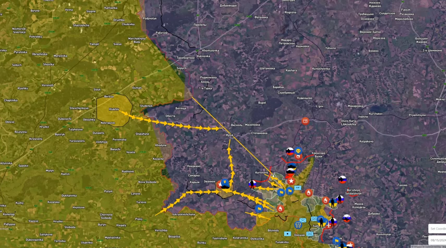Venäjämielisissä lähteissä on jo jonkin aikaa spekuloitua, että nyt kun Venäjän puolustus estää etenemisen pohjoiseen, koilliseen ja itään, niin tuo lännen pullistuma yritetään eliminoida ja sitä kautta helpottaa Ukrainan puolustusta Venäjän maaperällä: