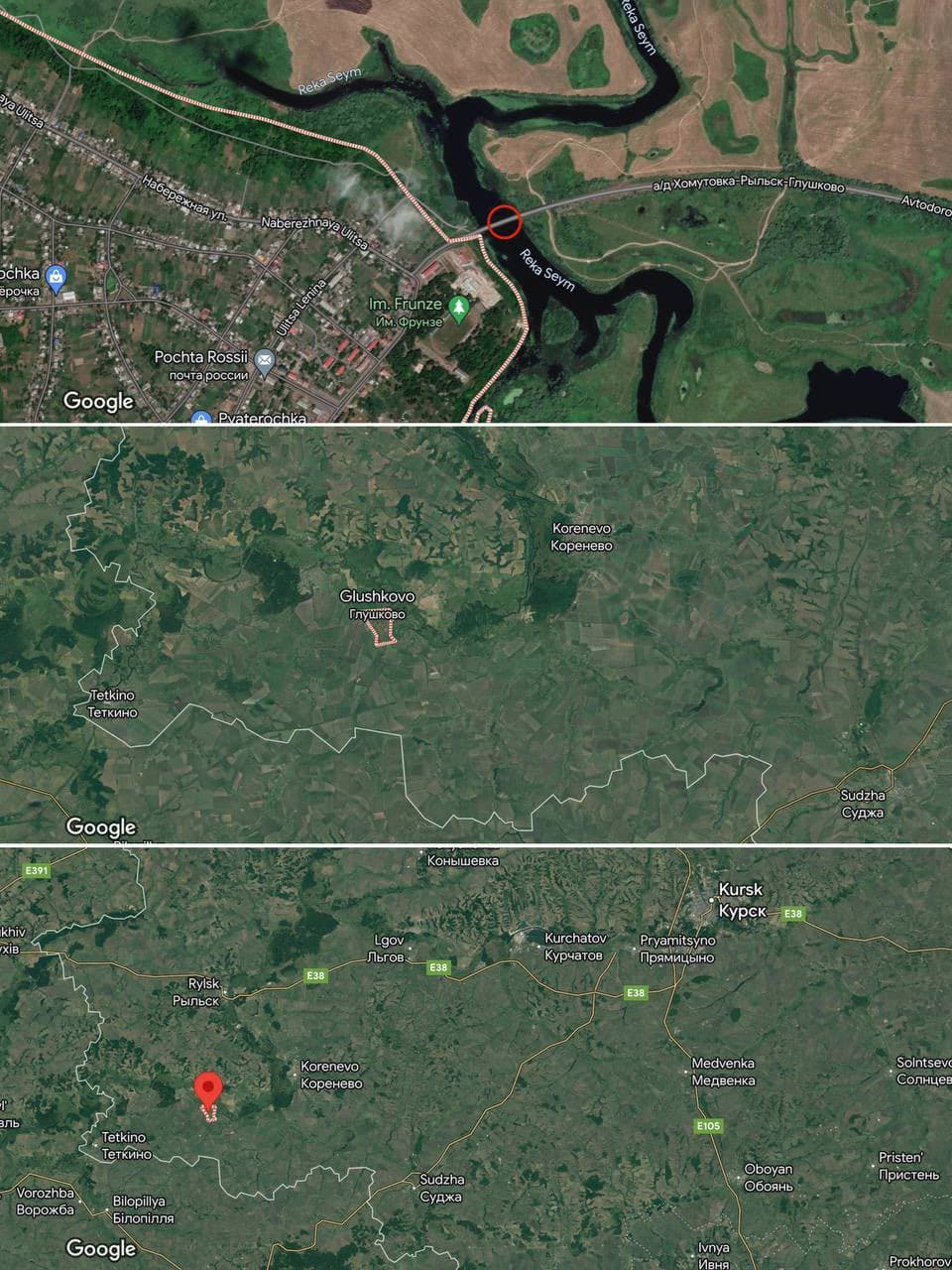 Eilen Glushkovon Seim-joen silta Kurskin alueella joutui jälleen kohteeksi. Sillan keskellä näkyy kaksi uutta reikää. Kevyet ajoneuvot voivat edelleen liikkua.