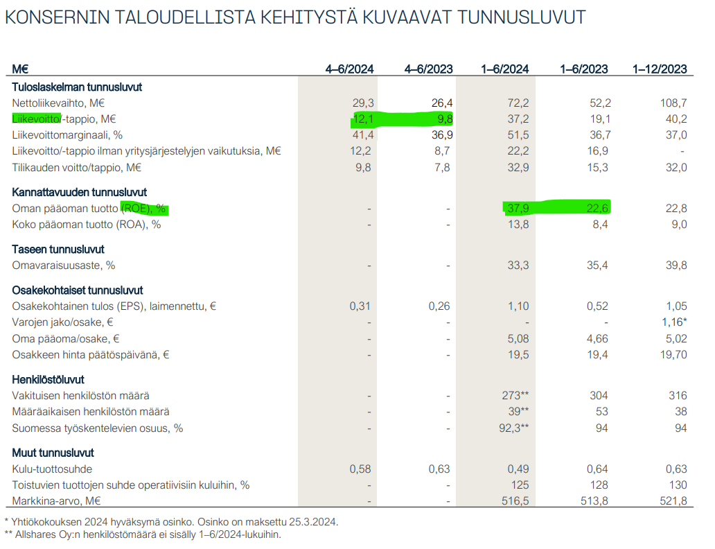 Oman pääoman tuotto oli 35,8 prosenttia (22,7 %).