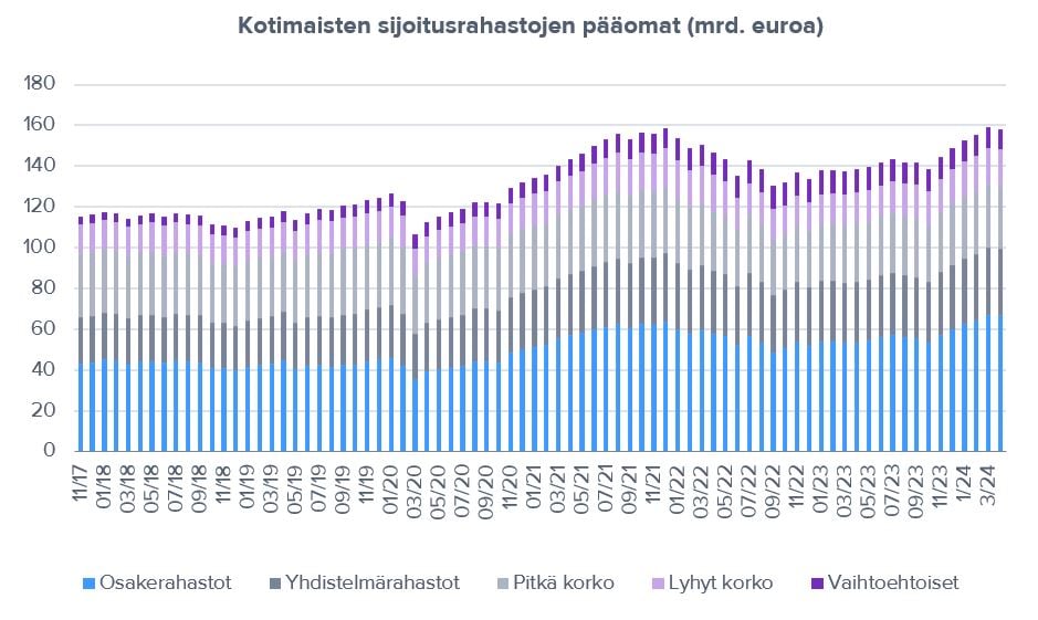 Hallinnoidut varat olivat maaliskuun lopussa nettomääräisesti 18,5 miljardia euroa (16,7 mrd. euroa).