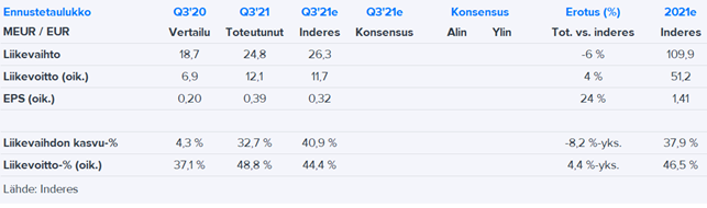 Yllä olevat seikat huomioiden arvioimme vuoden 2021 liikevoiton ylittävän selvästi edellisvuoden tason.
