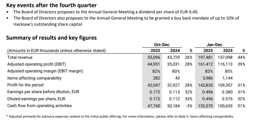 Hacksaw har ingen egen tråd, så vi lägger huvuddragen från konkurrentens senaste rapport här.