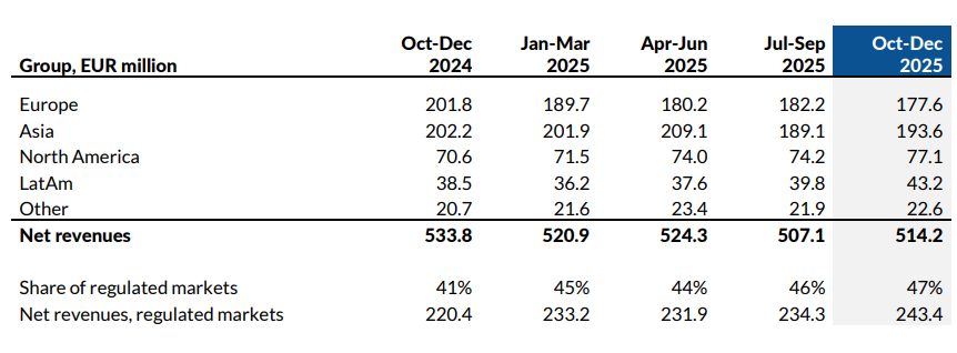 utvecklingen i Europa var dock inte bra, tyngd av ogynnsamma regulatoriska rörelser. Vi anser att Evolution för närvarande har de starkaste skyddsåtgärderna (ring-fencing) på plats bland alla leverantörer, men vi inser också att de reglerade marknaderna tappar mark. Den regulatoriska vågskålen är inte i balans, och denna utveckling är dålig för de mest sårbara spelarna. Vågskålen tenderar dock att svänga över tid, och vi förblir lika engagerade som någonsin i att erbjuda europeiska operatörer och spelare de mest underhållande upplevelserna.