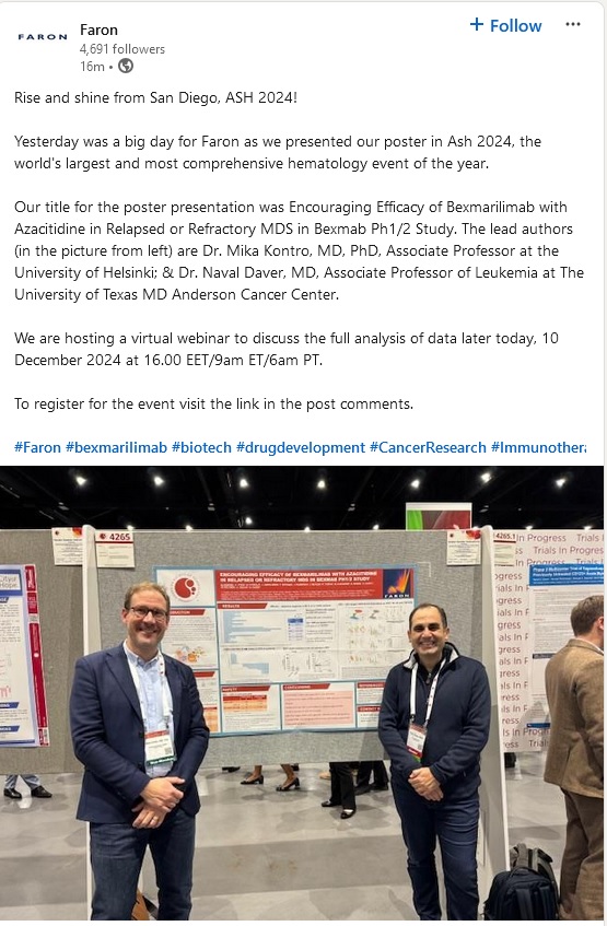 Toinen uusi asia taisi olla partneroituminen yhdysvalloissa mds foundation kanssa. Niiden sivuilla faron näkyy kumppanina. Tässä linkki sinne About Us | MDS Foundation