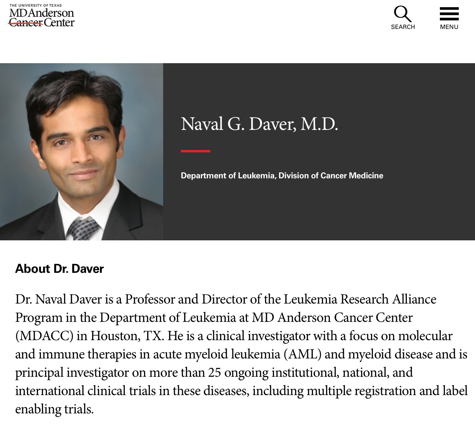 Esittäjä Tohtori Naval Daver, MD, Leukemian osasto, Texasin yliopiston MD Andersonin syöpäkeskus