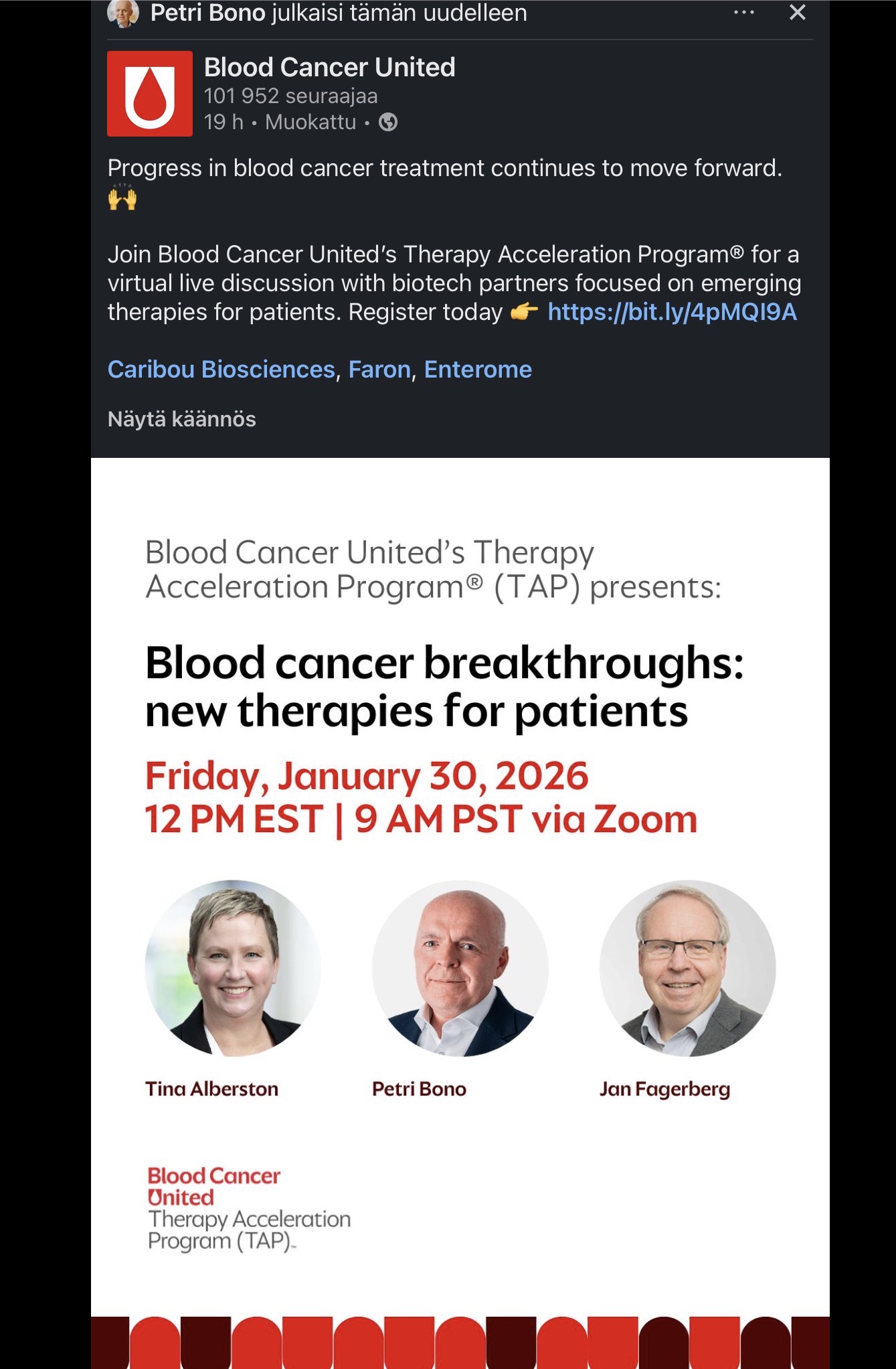 Faron is a partner of Blood Cancer United’s (formerly Leukemia & Lymphoma Society) Therapy Acceleration Program (TAP).
