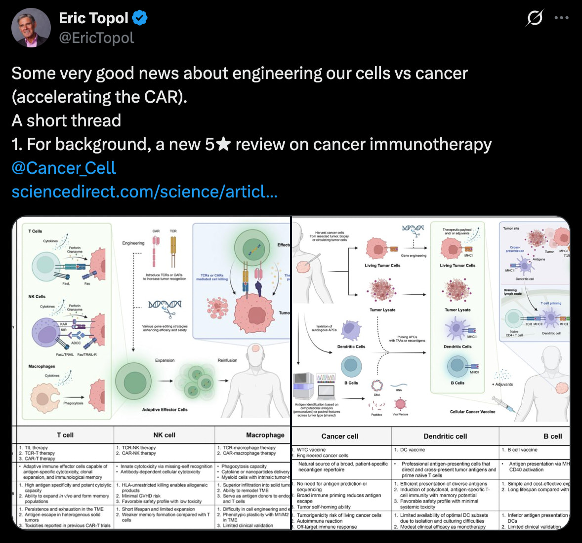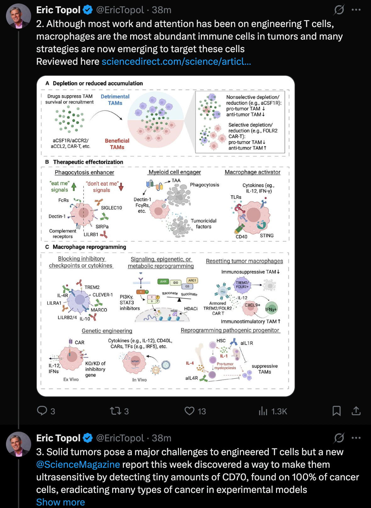 Topol has woken up and is painting a picture of accelerating development, where T-cell editing and macrophage targeting are central to building next-generation cancer treatments.