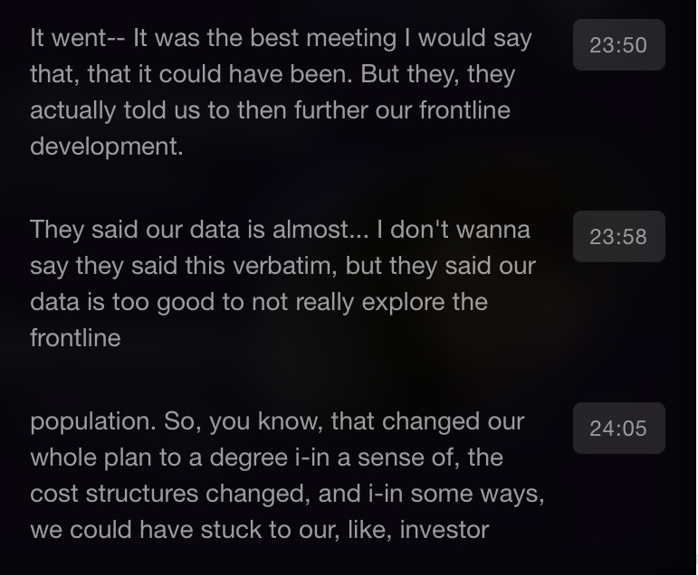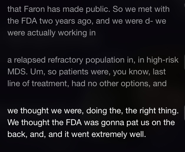 Joab valottaa, mitä keskusteluissa FDA:n kanssa tapahtui 2 vuoden aikana. Lopultahan näytettiin polku nopeutettuun myyntilupaan onneksi.