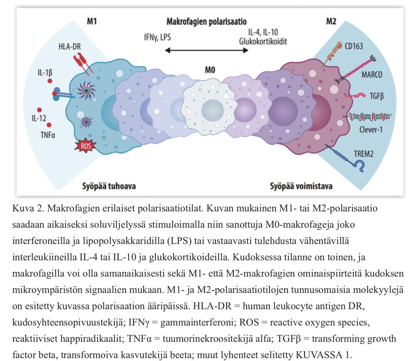 Below is Maija’s outline from Duodecim a couple of years ago, which also states that this is not about either M1 or M2, but something in between, and what influences which direction. The situation in the TME changes constantly, just like Faron here in the macroenvironment.