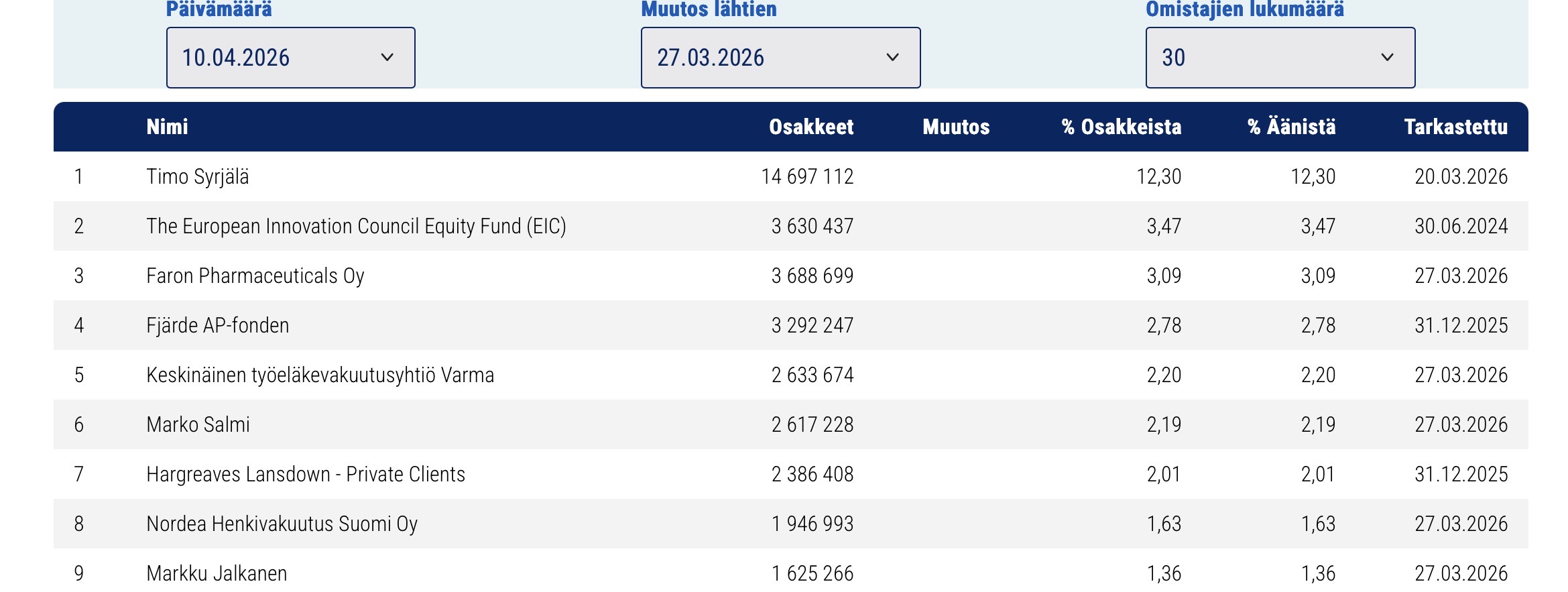 Muilla takaajilla ei tiettävästi ole omistusta ollut, paitsi HCM:llä, hallintarekisterissä voisi olla joku muukin piilossa, onkohan joku pitänyt laskua HCM:lle muunnetuista lapuista? 8 MEURilla Faron lienee lyhentänyt lainaa, kerran ainakin rahalla. Liputusrajaa 5 % ei ole HCM ainakaan ylittänyt, vielä. Luultavasti tosin hankkiutuu eroon eikä jää omistajaksi spekuloidakseen omistusosuudella.