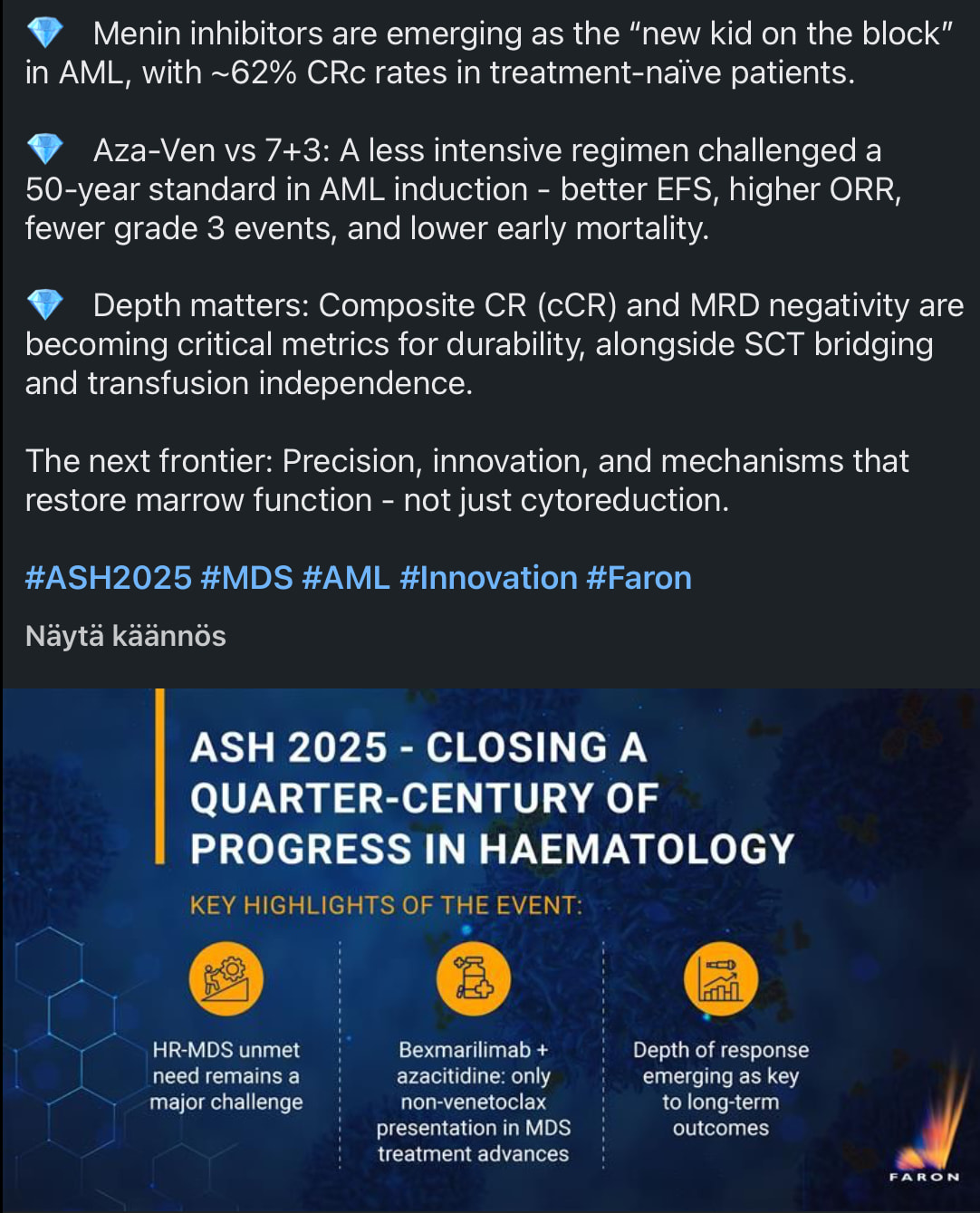Kaikella on väliä, mutta kuinka oleellista, en tiedä. Tuli tämä yhteys mieleen kun törmäsin X:ssä Syndaxin Beat-AML tutkimukseen. Siinä MRD negatiivisuus oli 100% flow cytometrialla mutta vain 31% NGS:llä.