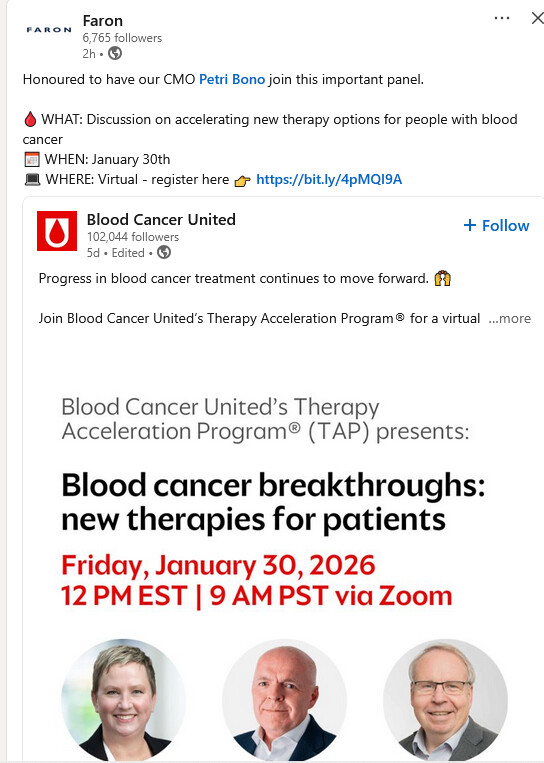 Lind and Syrjälä’s sales really reek of a directed share issue. I wonder if a new major player has been found who would sink tens of millions into Faron? Hard to believe that we could buy much additional time through financing with only Lind and Syrjälä’s efforts if the price tag for the F2b/3 is €50M🤔