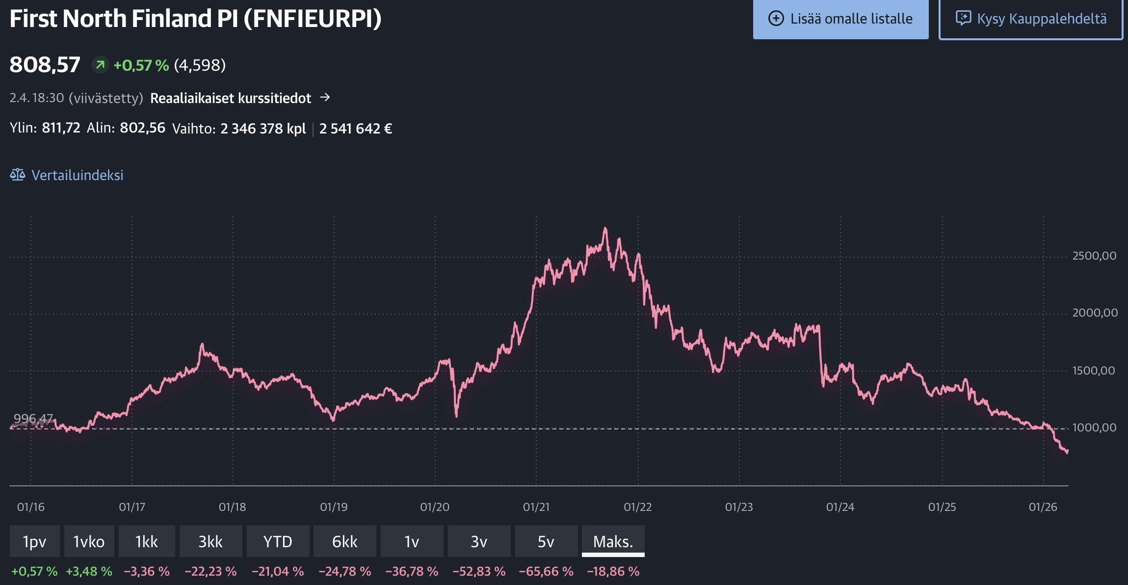 Noi Variksen poimimat yhtiöt, Faron ml. ovat First North listalla, paitsi Optomed ja Nightingale (joka sekin on -71 % tullut alas).
