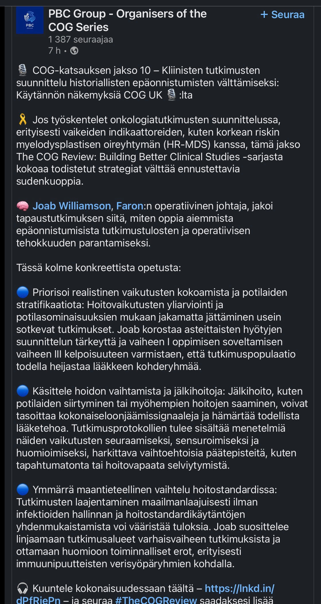Producerad av PBC Group (Pharmaceutical Business Conference Group), en brittisk konferensarrangör specialiserad på professionella evenemang inom klinisk läkemedelsforskning. De är särskilt kända för sitt COG Series (Clinical Outsourcing Group) evenemangskoncept. Nätverkare.