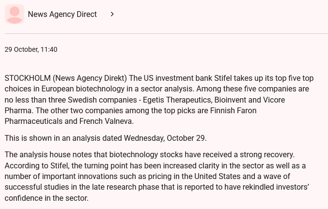 Viime viikolla länsinaapurissa uutisoitiin Stifelin nostaneen Faronin TOP5 listalle Euroopan biotekkien joukossa. Olen yrittänyt tuota Stifelin sektorirapsaa netistä kaivella huonoin tuloksin, olisiko jollakin täällä käsillä?