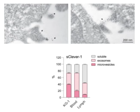 Olemme havainneet, että makrofagit ja endoteelisolut voivat erittää Clever-1:tä solunulkoisissa rakkuloissa tai liukoisessa muodossa. Syöpäpotilailla (erityisesti rintasyöpä) on plasmassa enemmän liukoista Clever-1:tä kuin terveillä. Bexmarilimab-hoito vähensi näitä tasoja merkittävästi.