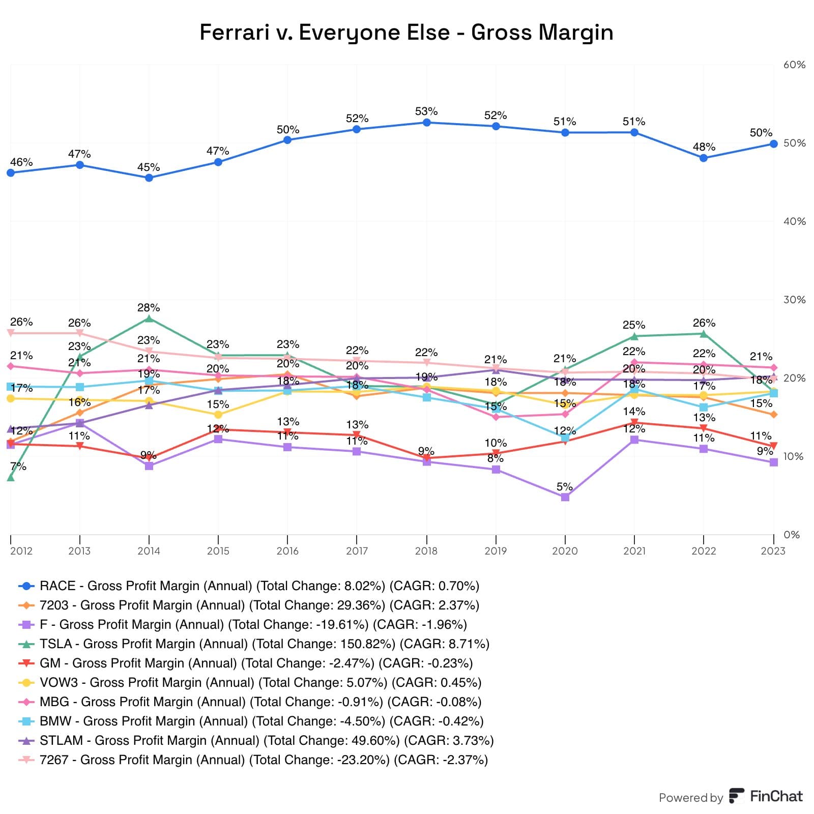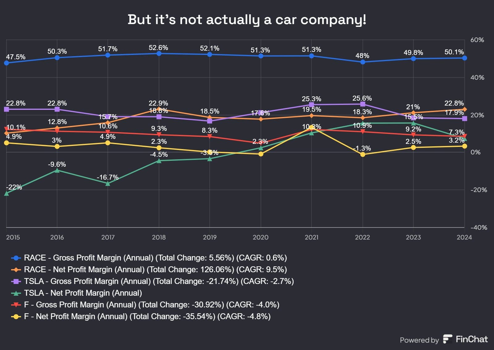 Ferrari on erilainen, sitä ei voi verrata perinteisiin valmistajiin eikä edes Teslaankaan, joka on myös vähän erilainen toimija. :slight_smile: (tai aina voi toki verrata periaatteessa, vaikka Piippoon)