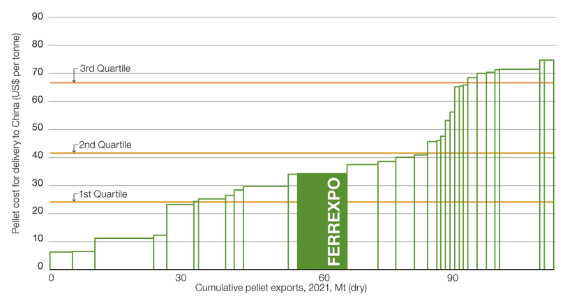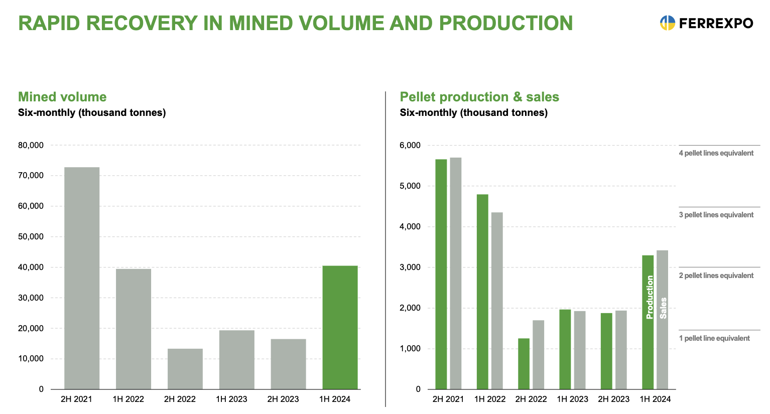 Ferrexpo on maailman kolmanneksi suurin rautamalmipellettien tuottaja. Yhtiön tuottamat rautamalmipelletit ovat korkealaatuisia (65%/67% FE) ja niillä on matalat hiilidioksidipäästöt (89kg/t):