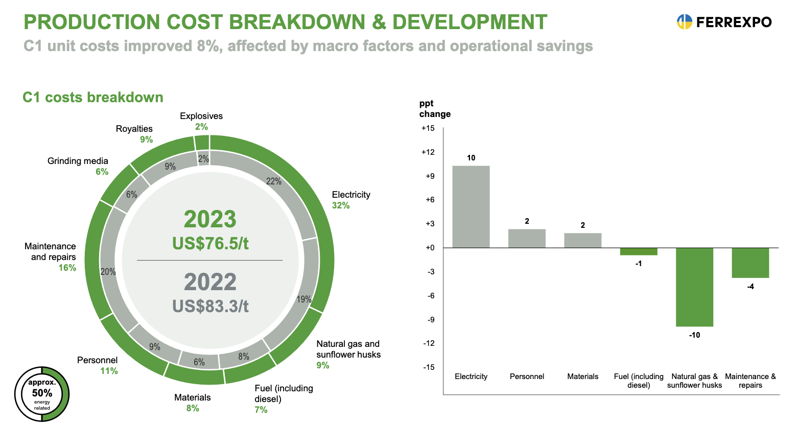 Kaivosten kuluprofiili on hyvin maltillinen ja kustannuksia on varaa tiputtaa reilusti tuotannon skaalatessa ylöspäin ja sodan loppuessa. Noin puolet kustannuksista johtuu energiakustannuksista, joten valitettavasti Venäjän ohjushyökkäykset Ukrainan energiainfrastruktuuria vastaan rasittavat yhtiön kulupuolta.