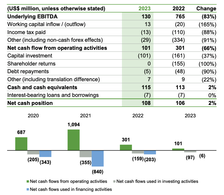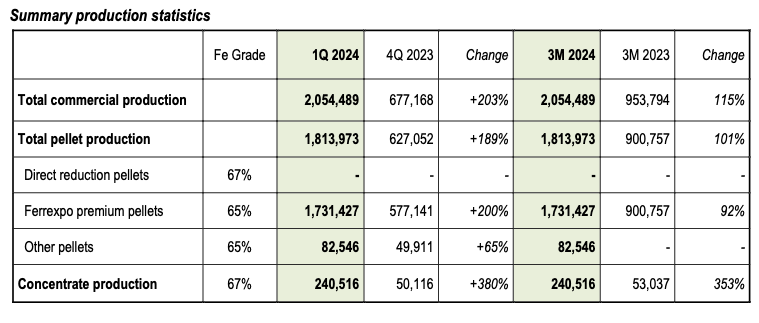 Kaikeksi onneksi 24Q1 alkoi tuotannossa näkyä selkeitä piristymisen merkkejä, kun yritys alkaa vihdoinkin osoittaa kykyä sopeutua sodanajan tilanteeseen ja Mustanmeren laivayhteydet ovat alkaneet toimimaan. Tuotanto kasvoi +200% ja pellettejä tuotettiin vajaa kaksi miljoonaa kappaletta kvartaalissa, mikä on jo kunnioitettava luku, sillä ennen sotaa tuotanto oli noin kolme miljoonaa pellettiä kvartaalissa.